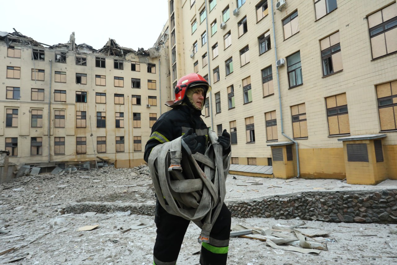 Під час атаки РФ на центр Харкова вранці 5 лютого одна з ракет потрапила по головному корпусу Харківського національного університету міського господарства імені О.М. Бекетова, в результаті зруйновано три поверхи будівлі.
