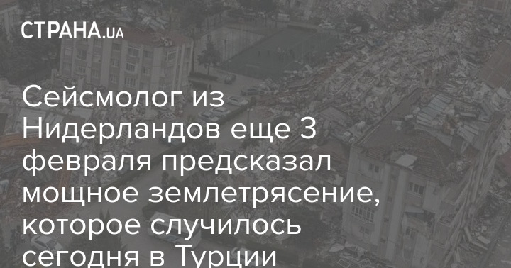 Сейсмолог із Нідерландів ще 3 лютого передбачив потужний землетрус, який стався сьогодні в Туреччині