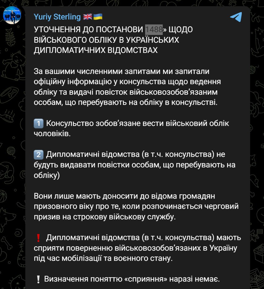 - Але дипломатичні структури не видаватимуть повістки особам, які перебувають на обліку.