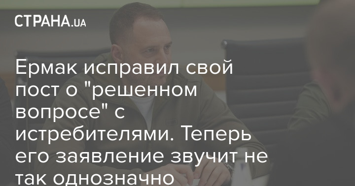 Глава Офісу президента Андрій Єрмак переписав свій допис про постачання Україні далекобійної зброї та винищувачів.