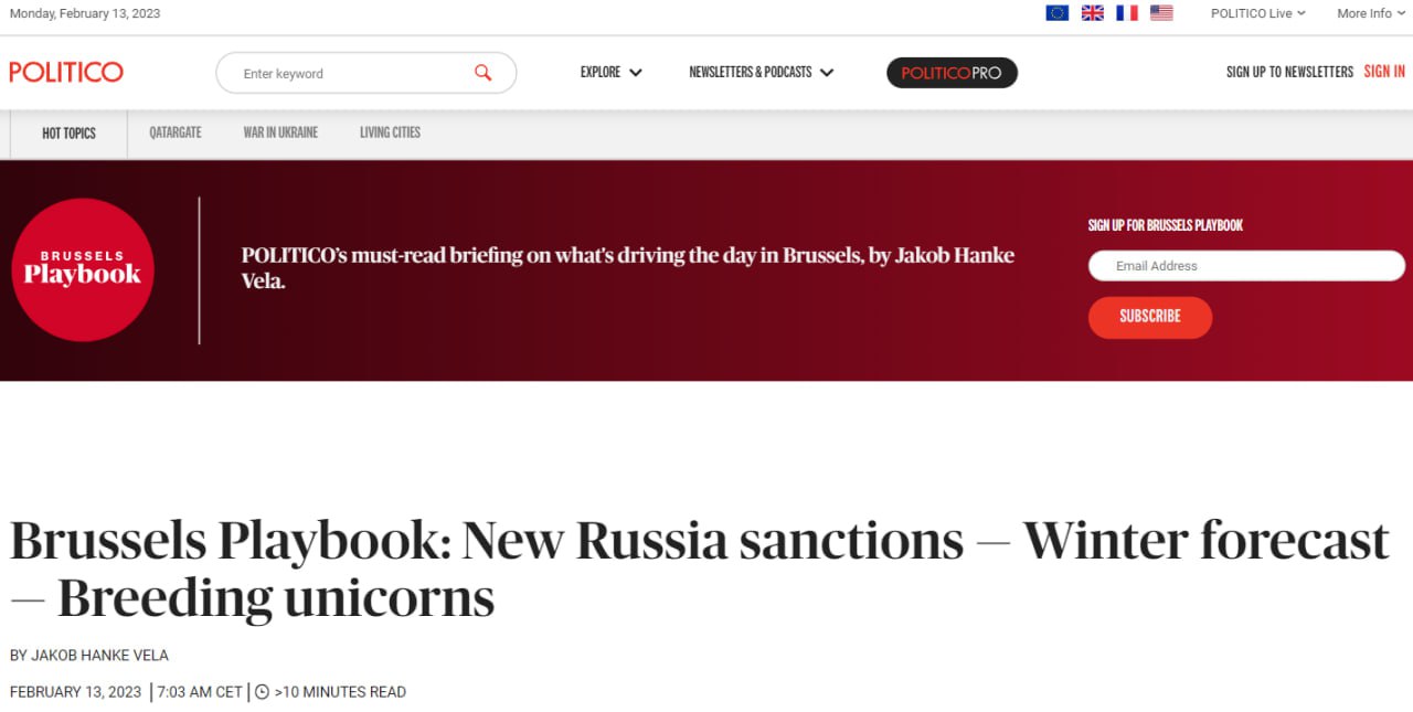 Новий пакет санкцій обговорюватиметься у ЄС 15 лютого.