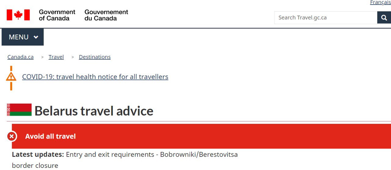 Громадянам Канади рекомендують залишити Білорусь комерційним транспортом.