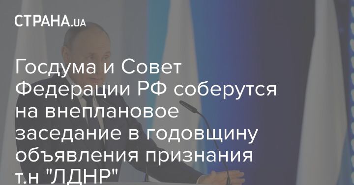 Держдума та Рада Федерації РФ зберуться на позапланове засідання у річницю оголошення визнання т.зв "ЛДНР"