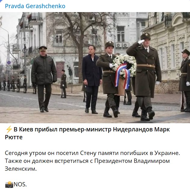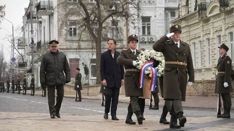 З ранку Рютте поклав вінок біля Стіни пам'яті, а далі у них запланована зустріч із президентом України Володимиром Зеленським та прем'єром Денисом Шмигалем, пише голландська газета NOS.