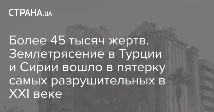Землетрус, що нещодавно стався в Туреччині та Сирії, вже увійшов до топ-5 найруйнівніших у XXI столітті.