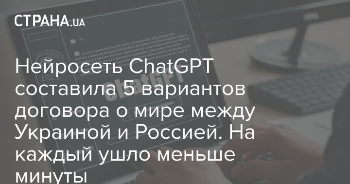 Доступна тепер в Україні нейромережа ChatGPT менш ніж за хвилину уклала договір про мир між Україною та Росією.