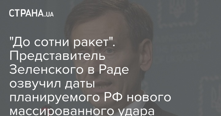 "До сотні ракет". Представник Зеленського в Раді озвучив дати запланованого РФ нового масованого удару