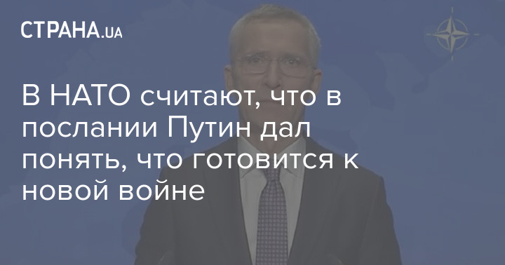 Генеральний секретар НАТО Єнс Столтенберг вважає, що в посланні до Федеральних зборів, які сьогодні, 21 лютого, зачитав президент Росії Володимир Путін, лідер РФ дав зрозуміти, що не готується до миру.