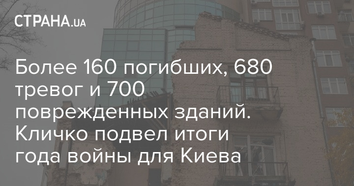 Понад 160 загиблих, 680 тривог та 700 пошкоджених будівель. Кличко підбив підсумки року війни для Києва