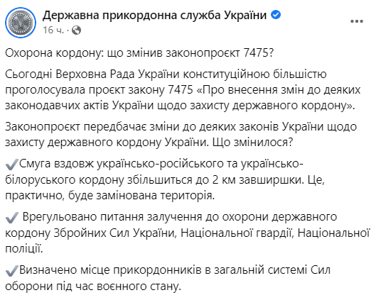 Відповідний законопроект ухвалила Верховна Рада, повідомляє Держприкордонслужба.