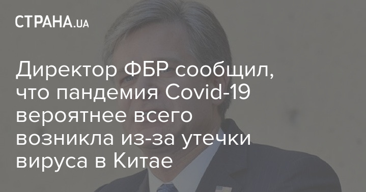 Директор ФБР повідомив, що пандемія Covid-19 найімовірніше виникла через витік вірусу в Китаї