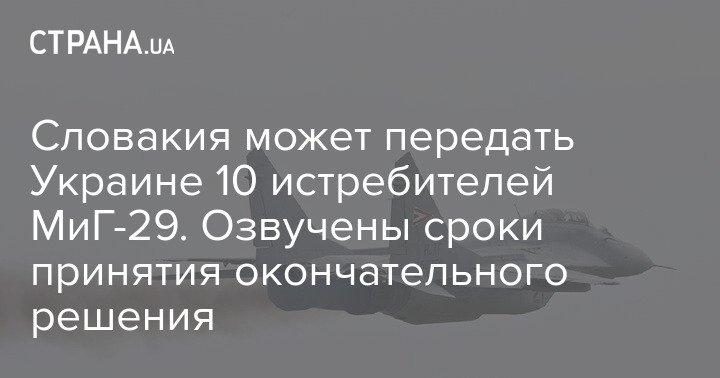 Міністр оборони Словаччини Ярослав Надь оголосив, що його країна може передати Україні 10 із 11 своїх винищувачів МіГ-29 радянського виробництва, які були зняті з озброєння минулого року.