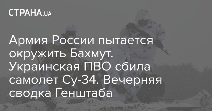 Армія Росії намагається оточити Бахмут. Українська ППО збила літак Су-34. Вечірнє зведення Генштабу
