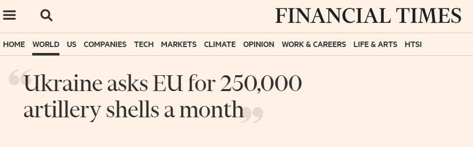 10.24 Україна просить по 250 тисяч артилерійських снарядів від ЄС щомісяця, стверджує Financial Times з посиланням на лист міністра оборони Олексій Резнікова, який потрапив у розпорядження видання.