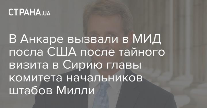 Посла США в Анкарі Джеффа Флейка викликали до МЗС Туреччини для пояснень. Це пов'язано із таємним нещодавнім візитом голови Об'єднаного комітету начальників штабів США Марка Міллі до Сирії.