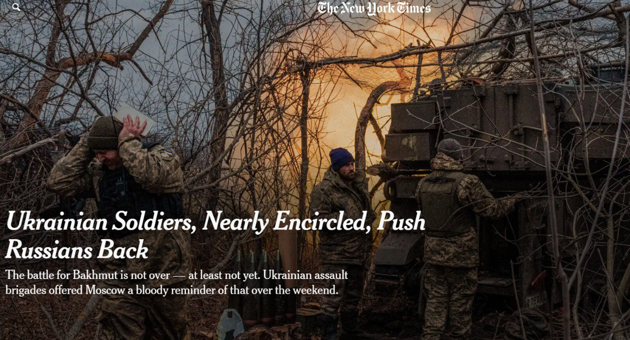 "Українське командування визнало, що їхні сили в Бахмуті ще стикаються з ризиком оточення, але бої минулих вихідних показали, що військові, які здивували світ своєю наполегливістю, ще не готові здавати Бахмут", - зазначає NYT.