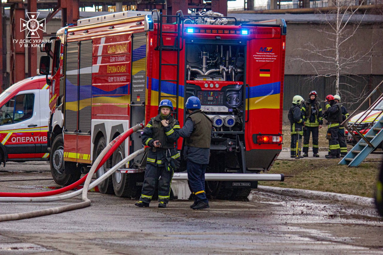 У Святошинському районі внаслідок падіння уламків ракети виникло загоряння п'яти автомобілів у дворі житлових будинків. Постраждали троє людей, двоє з яких госпіталізовані до лікарні та ще одна людина від госпіталізації відмовилася. Загоряння авто ліквідовано.