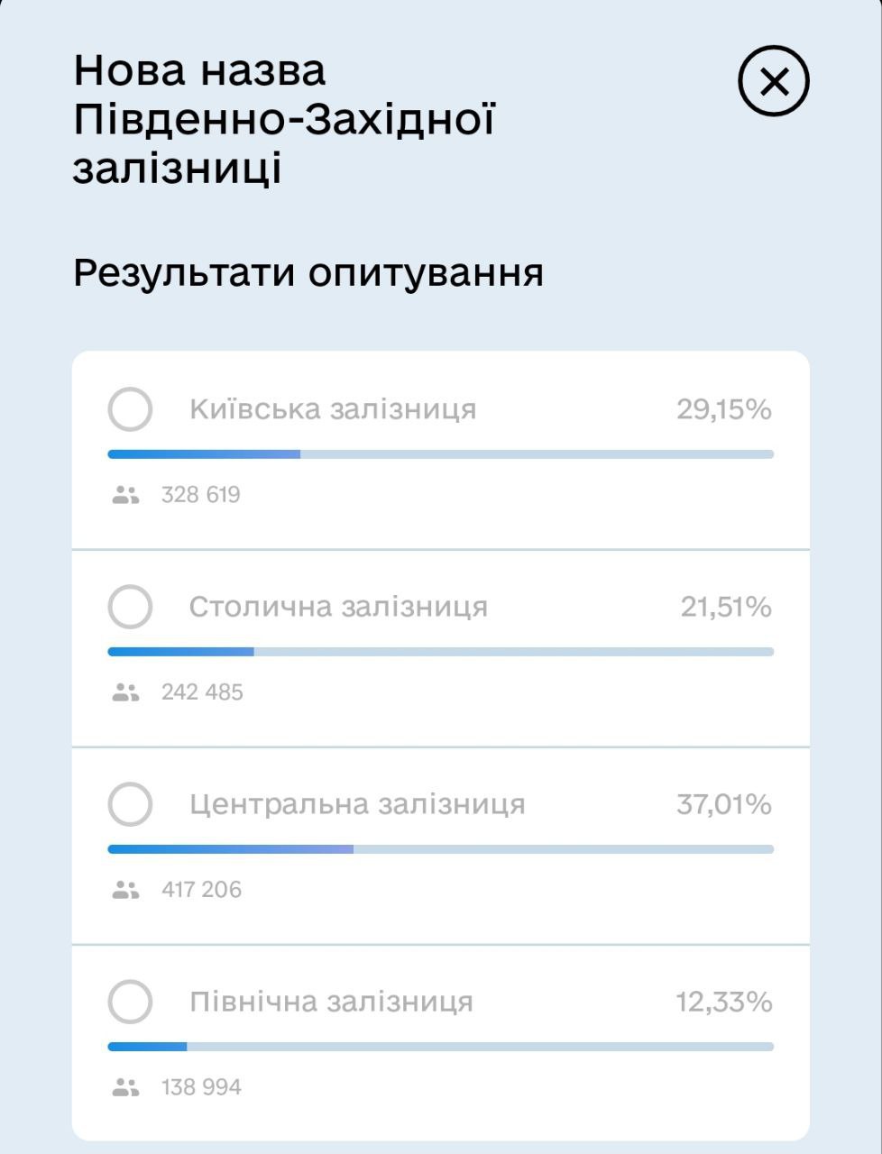 Південно-Західну залізницю перейменують на "Центральну" - результати опитування