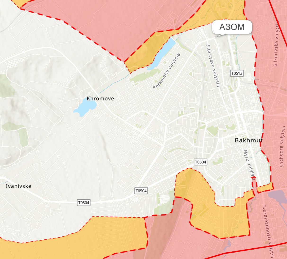 "На кадрах із геолокацією, опублікованих 10 березня, видно, що російські сили просунулися на нові позиції на північному заході Бахмута в межах 800 метрів від металообробного заводу АЗОМ", - йдеться у повідомленні.