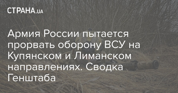 Армія Росії намагається прорвати оборону ЗСУ на Куп'янському та Лиманському напрямах. Зведення Генштабу