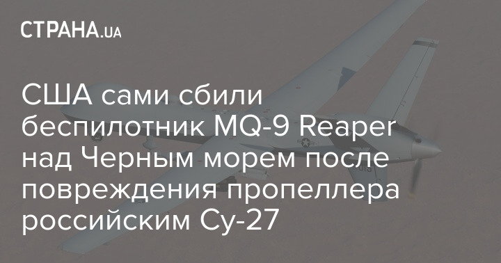 Європейське командування ЗС США стверджує, що над Чорним морем російський Су-27 зіткнувся з американським безпілотником MQ-9. Дрон впав у міжнародні води.