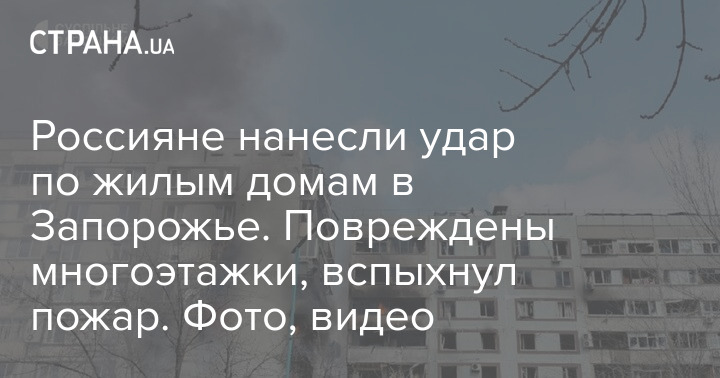 Росіяни завдали удару по житлових будинках у Запоріжжі. Пошкоджено багатоповерхівки, спалахнула пожежа. Фото, відео