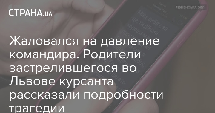 З'явилися подробиці самогубства курсанта у Львові, який, як повідомлялося, 19 березня застрелився у наряді. За словами батьків, син скаржився на тиск командира.