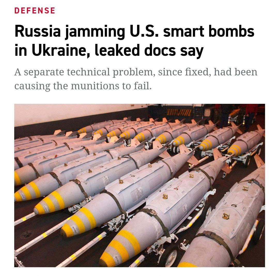 Як уже повідомлялося у витоках Пентагону, "розумні" бомби стають жертвами російських радіоелектронних перешкод, через що часто не влучають у ціль.