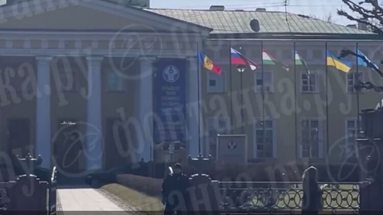 Український прапор біля Таврійського палацу у Петербурзі. Скріншот відео