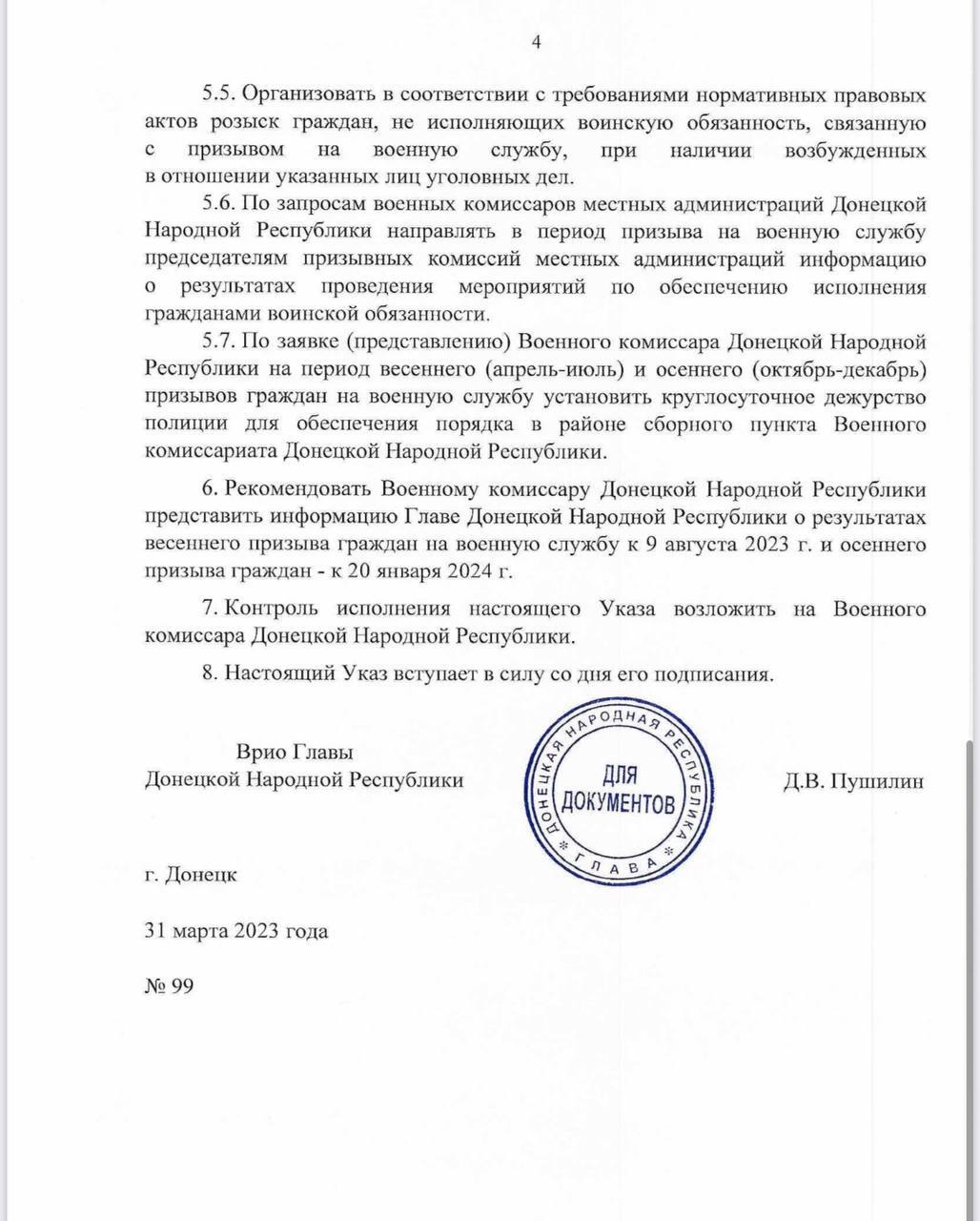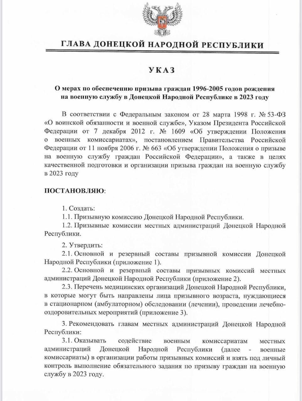 11.25 Слідом за "ЛНР" свій "указ" про заклик громадян 1996-2005 років народження на військову службу у 2023 році видали і до "ДНР".