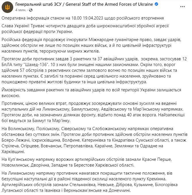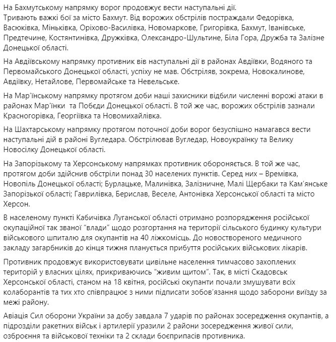 Докладніше про те, що відбувалося вчора – читайте у підсумках за 18 квітня.