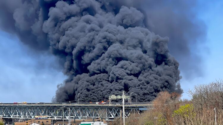 У штаті Коннектикут на мосту головної траси країни перекинувся та спалахнув бензовоз. Фото