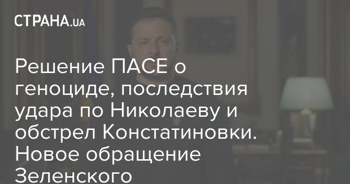 Рішення ПАРЄ про геноцид, наслідки удару по Миколаєву та обстріл Констатинівки. Нове звернення Зеленського