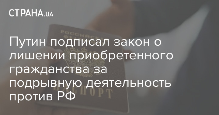 Президент РФ Володимир Путін підписав закон, згідно з яким у Росії позбавлятимуть набутого громадянства за низку правопорушень.