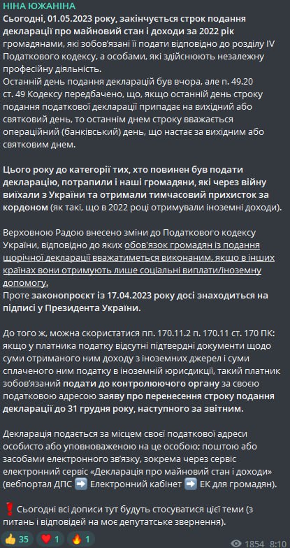 Українські біженці за кордоном, як і раніше, мають подати декларації про доходи за 2022 рік - депутат