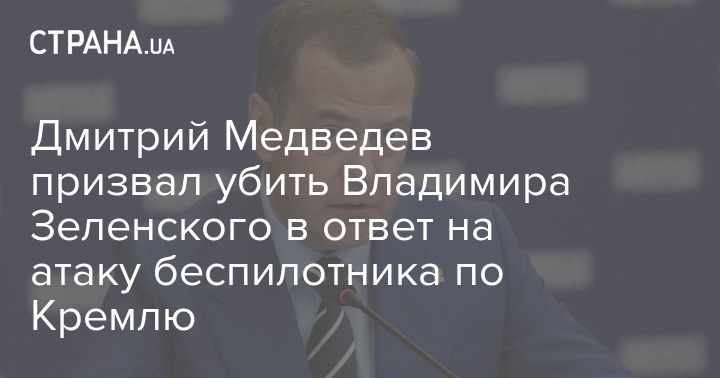 Дмитро Медведєв закликав убити Володимира Зеленського у відповідь на атаку безпілотника Кремля