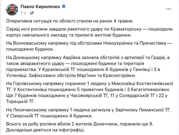 Війна в Україні триває вже 435 день. Ми слідкуємо за новинами 4 травня у своєму онлайні.