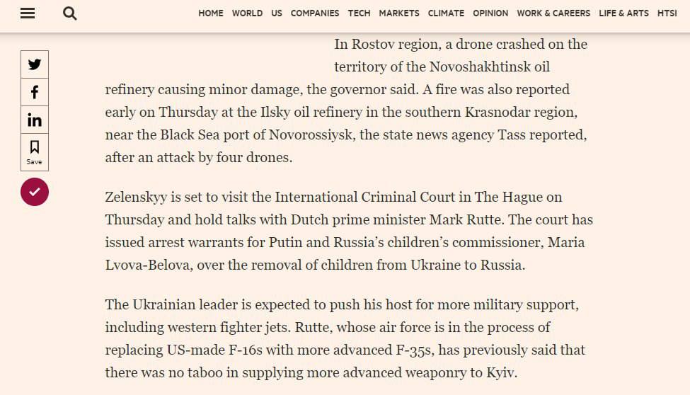 Тим часом, прем'єр Нідерландів Марк Рютте заявив, що питання передачі Україні F-16 зараз обговорюється з союзниками.