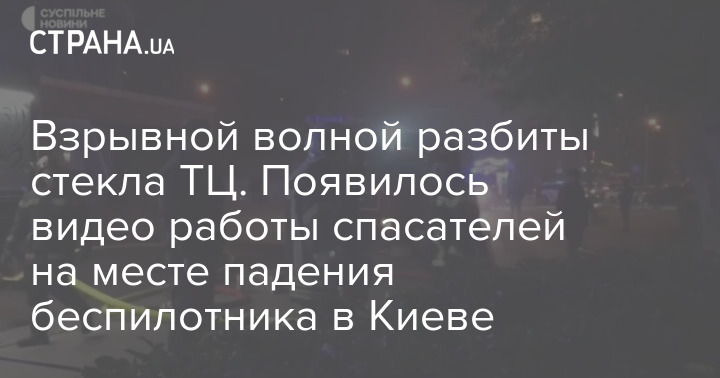 Вибуховою хвилею розбито скло ТЦ. З'явилося відео роботи рятувальників на місці падіння безпілотника у Києві