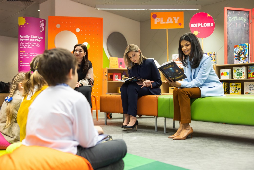 Також перша леді України та Акшата Мурті разом відвідали Британську бібліотеку. Раніше там відбулася презентація ініційованого першої леді України проекту "Книги без кордонів", для якого надруковано 16 тисяч книг українською мовою для дітей, які перебувають у Великій Британії.