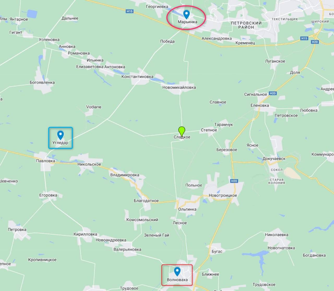Солодке (захоплене росіянами ще навесні минулого року) розташоване за 7-8 кілометрів від траси H20, яка через Волноваху з'єднує Донецьк з Маріуполем.