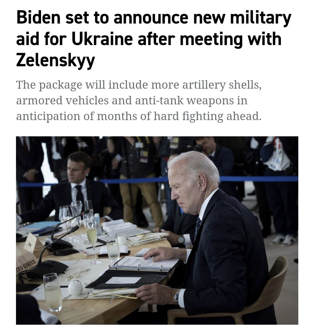 Президент США Джо Байден має намір оголосити про новий пакет військової допомоги Україні на суму 375 мільйонів доларів. Це відбудеться після зустрічі президента США зі своїм українським колегою Володимиром Зеленським на саміті G7 у Японії.