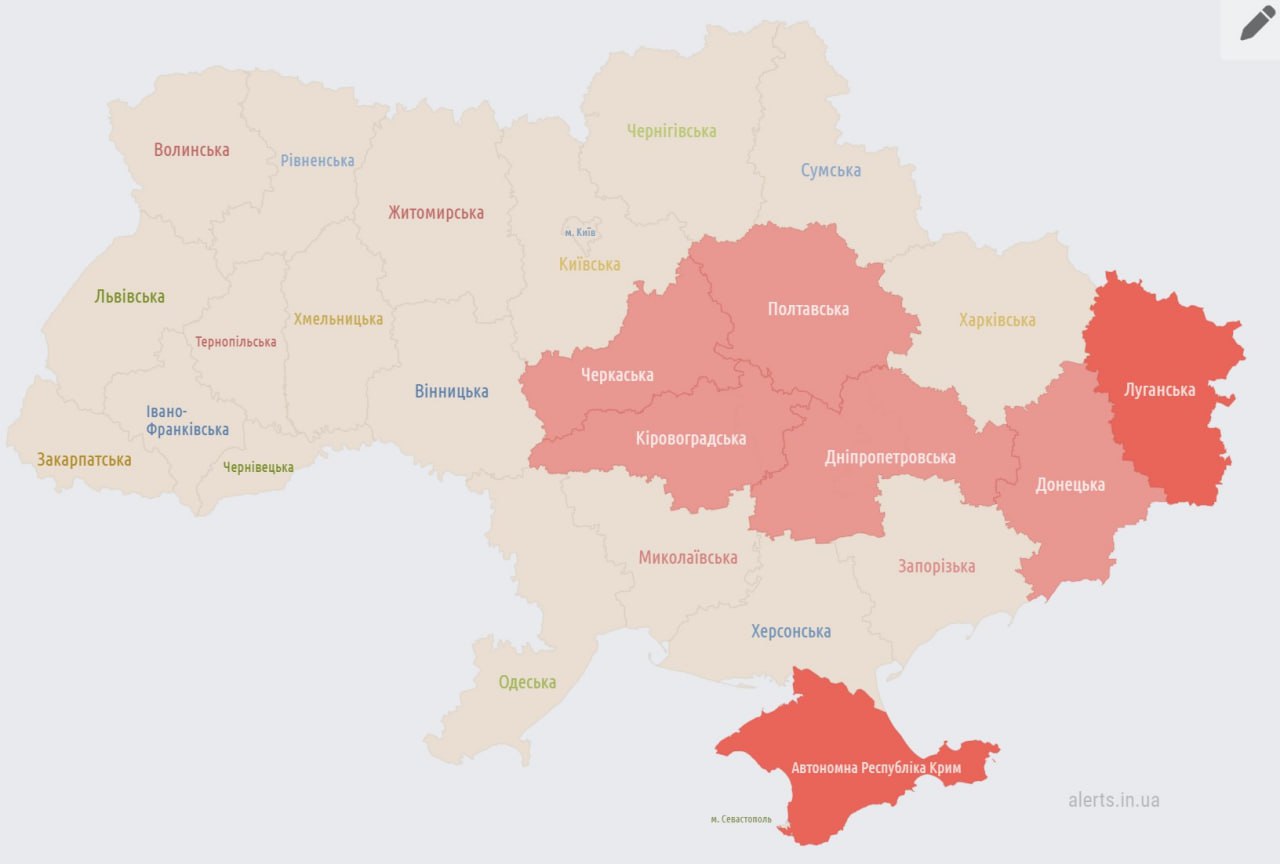 9:44 Повітряна тривога поширюється східними регіонами України.