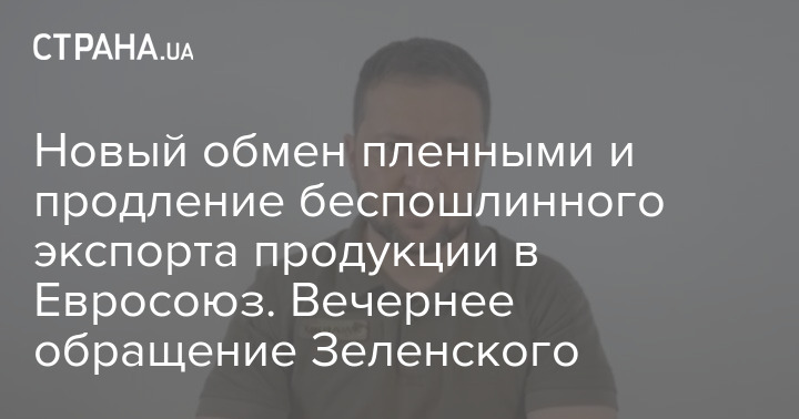 Новий обмін полоненими та продовження безмитного експорту продукції до Євросоюзу. Вечірнє звернення Зеленського