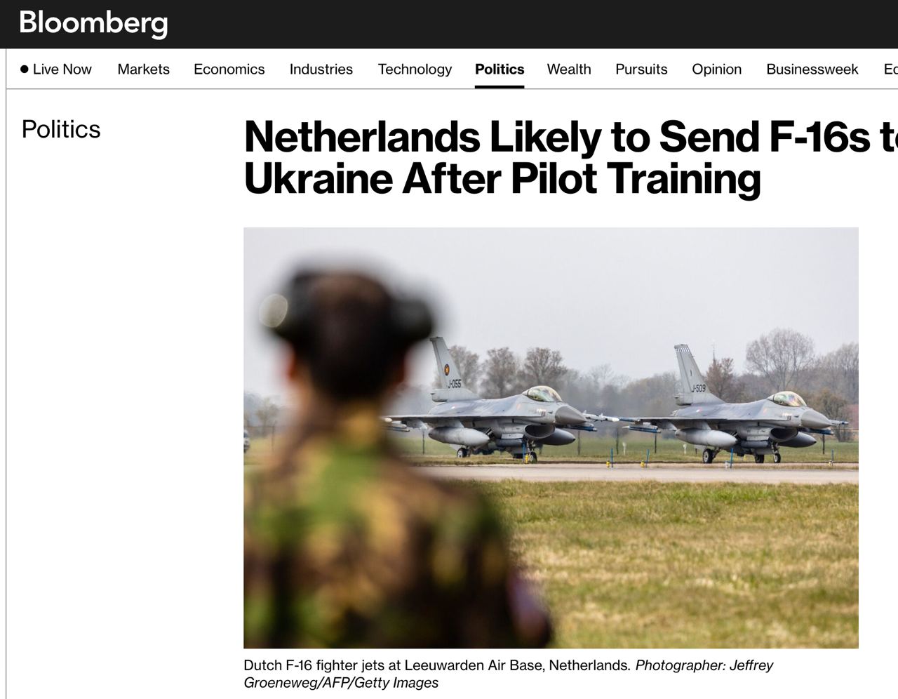 Нідерланди, ймовірно, відправлять Україні винищувачі F-16 після завершення навчання пілотів - Bloomberg