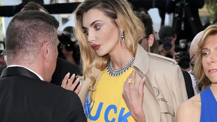 Раніше ми писали, що 23 травня блогер та фітнес-тренер з України Ілона Чорнобай влаштувала перформанс на червоній доріжці Канського кінофестивалю, з'явившись у сукні квітів українського прапора та обливши себе бутафорською кров'ю. Її досить грубо вивели із заходу.