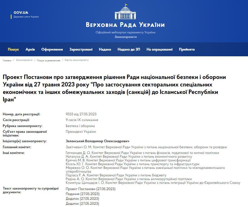 Президент України Володимир Зеленський вніс до Верховної Ради ухвалу про введення санкцій проти Ірану на 50 років.