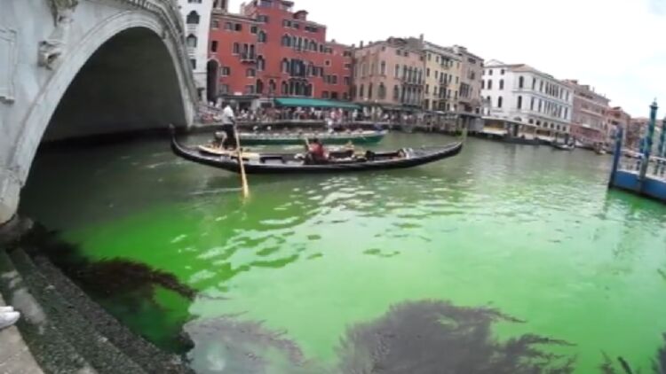 Правоохоронці італійської Венеції розслідують походження зеленої рідини, яка з'явилась у знаменитому Гранд-каналі міста.