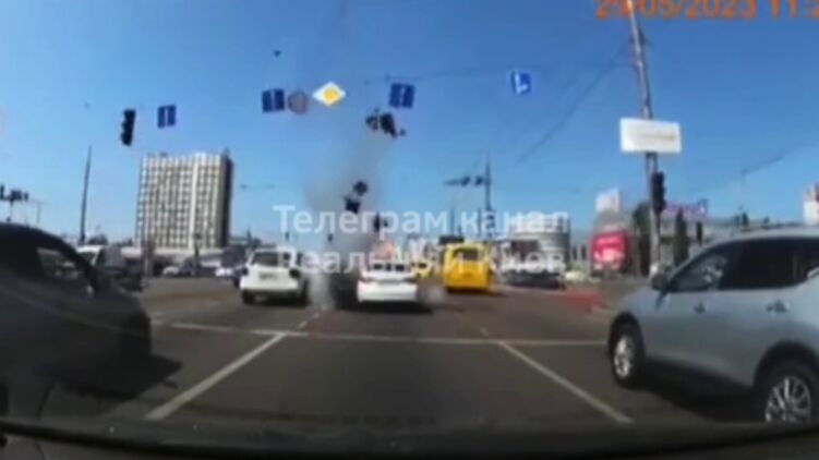 З'явилося ще одне відео моменту падіння уламка ракети на проїжджу частину в Києві
