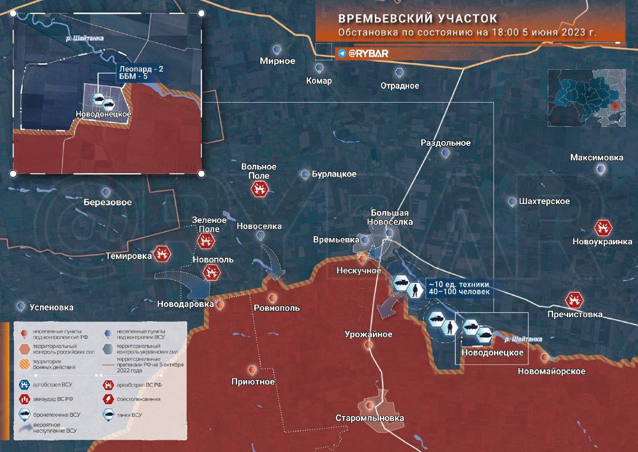 Бої, судячи з офіційних даних РФ, йшли в районі Ненудного (Донецька) та Новодарівки (Запорізька область). Міноборони Росії стверджує, що атака не вдалася, і до ранку 5 червня ЗСУ відійшли на вихідні позиції.